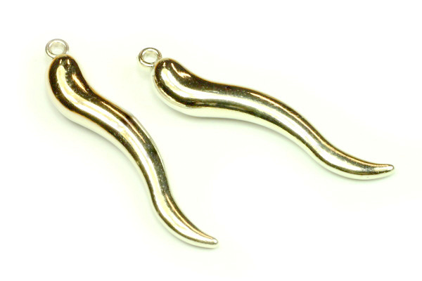 - Akrylový přívěsek pokovený, špičatá vlnka 49 mm, barva stříbro, 2 ks