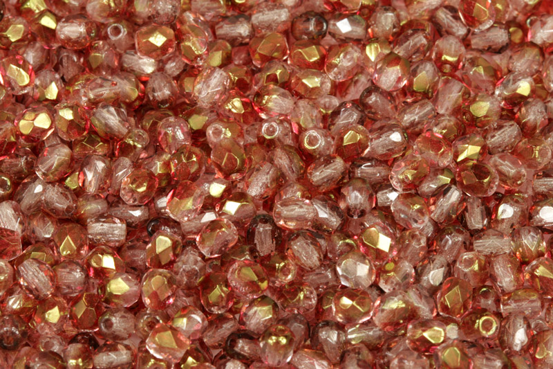 Broušená kulička ohňovka 4 mm, 40 ks/16 cm - růžovočervený listr na krystalu (půldekor)