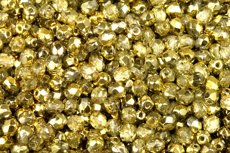 Broušené korálky ohňovky 4 mm, 40 ks/16 cm - zlatý půlpokov na krystaluSkladem30 Kč/ bal.