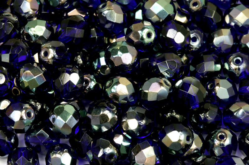 - Broušené korálky ohňovky 8 mm, 20 ks/16 cm - transp. kobaltově modrá s pokovem Celsian