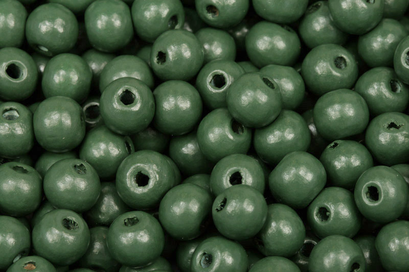 - Dřevěné korálky lakované, kulička 8 mm, 10 g (60-65 ks) - tmavě khaki zelená