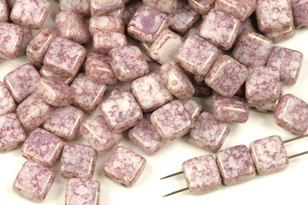 Dvoudírková Czech Tila 6x6 mm, 30 ks - fialový mramorový listr na alabastru