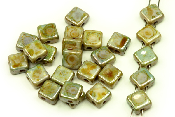 - Dvoudírková Czech Tila diagonal 6x6 mm, 30 ks - modrá lazura na alabastru