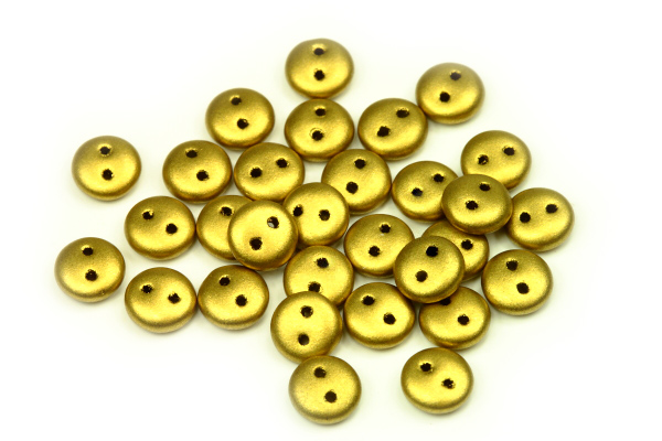 - Dvoudírková čočka (2-hole lentil) 6 mm, 30 ks - matná žlutozlatá pálená, bronze gold