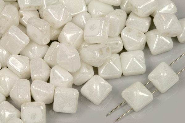 - Dvoudírková pyramida, beadstud 8x8 mm, 10 ks - bílý alabastr s listrem