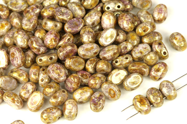 - Dvoudírkový korálek Bios 5x7 mm, 30 ks - bronzový mramorovaný listr Senegal na alabastru