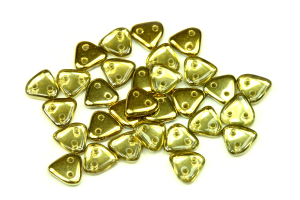 - Dvoudírkový trojúhelník (sekyra) 6x6 mm, 30 ks - zlatý půlpokov Amber na krystalu