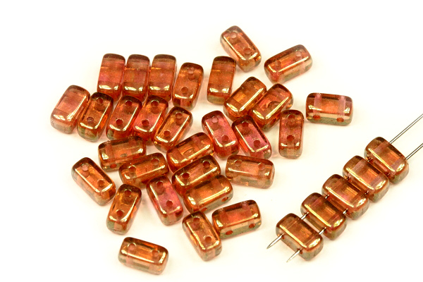 Dvoudírová cihlička, obdélník 3x6 mm, 30 ks - červený listr na krystaluSkladem14 Kč/ bal.
