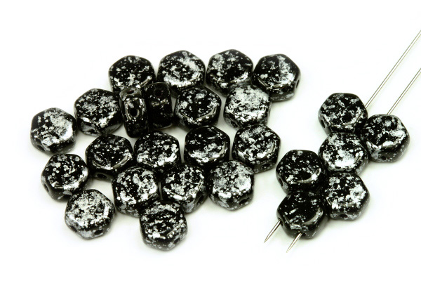 Dvoudírový hexagon (honeycomb) 6 mm, 30 ks - stříbrný granit na černéSkladem20 Kč/ bal.