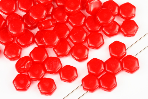 - Dvoudírový hexagon (honeycomb) 6 mm, 30 ks - voskový červený listr na alabastru