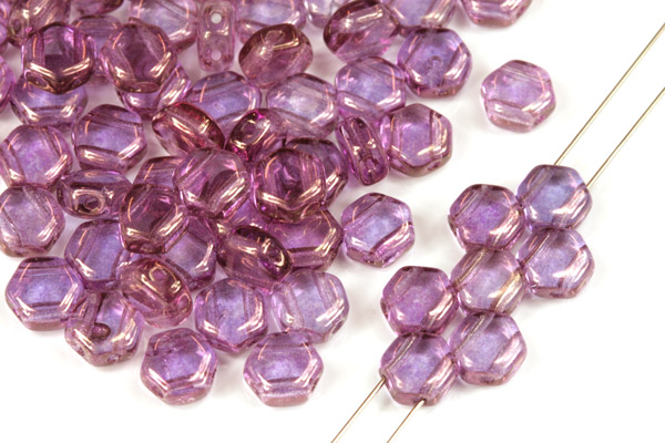 - Dvoudírový hexagon (honeycomb) 6 mm, 30 ks - zlatavý fialový listr na krystalu