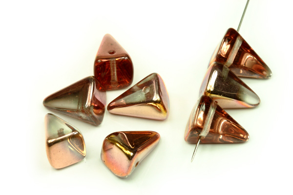 - Hranatý hrot, pyramida 7x7x11 mm, 10 ks - měděnozlatý půlpokov Capri na krystalu