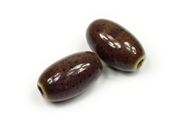 - Keramické korálky, oliva 12x20 mm, 1 ks - kropenatá fialová