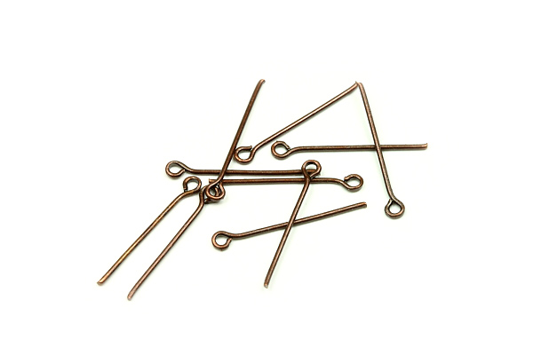 Ketlovací (očkové) jehly o délce 20 mm vyrobené z bižuterního kovu s povrchovou úpravou (galvanizací) v provedení stará měď (staroměď), průměr drátu je 0,7 mm.