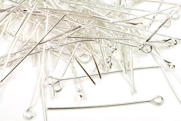 Ketlovací (očkové) jehly o délce 35 mm vyrobené z bižuterního kovu se stříbrnou povrchovou úpravou (galvanizací), průměr drátu je 0,7 mm.