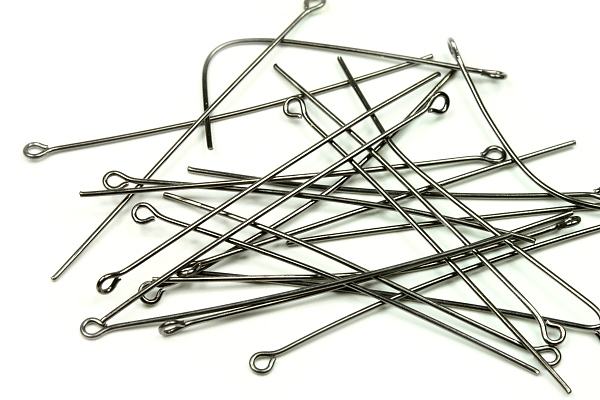 Ketlovací (očkové) jehly o délce 50 mm vyrobené z bižuterního kovu s povrchovou úpravou (galvanizací) v barvě antracitu, průměr drátu je 0,7 mm.