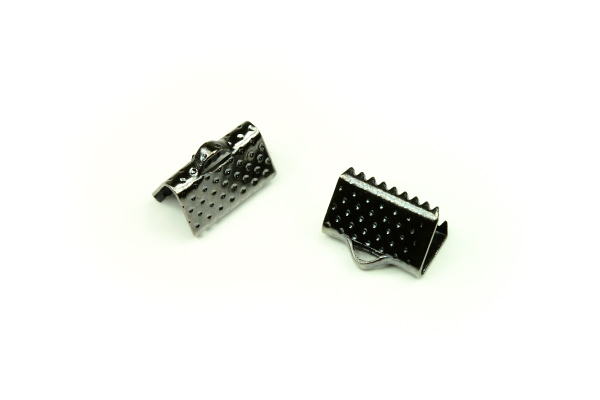 Koncovka na stuhu široká 10 mm se zoubky, galva antracit, 2 ksSkladem6 Kč/ bal.