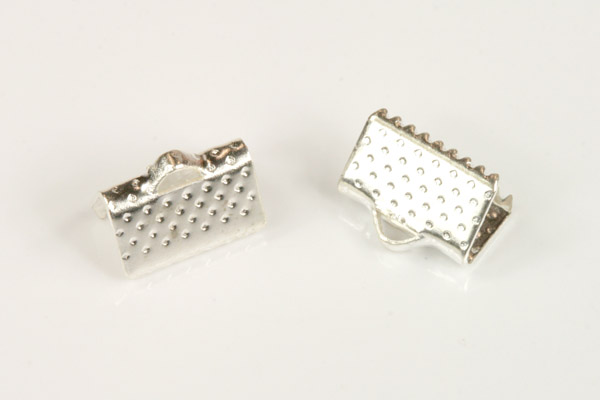 Koncovka na stuhu široká 10 mm se zoubky, galva stříbro, 2 ksSkladem6 Kč/ bal.