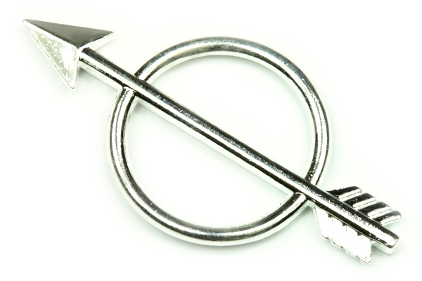 - Kovový mezidíl kruh se šípem 46x23 mm, galva stříbro, 1 ks