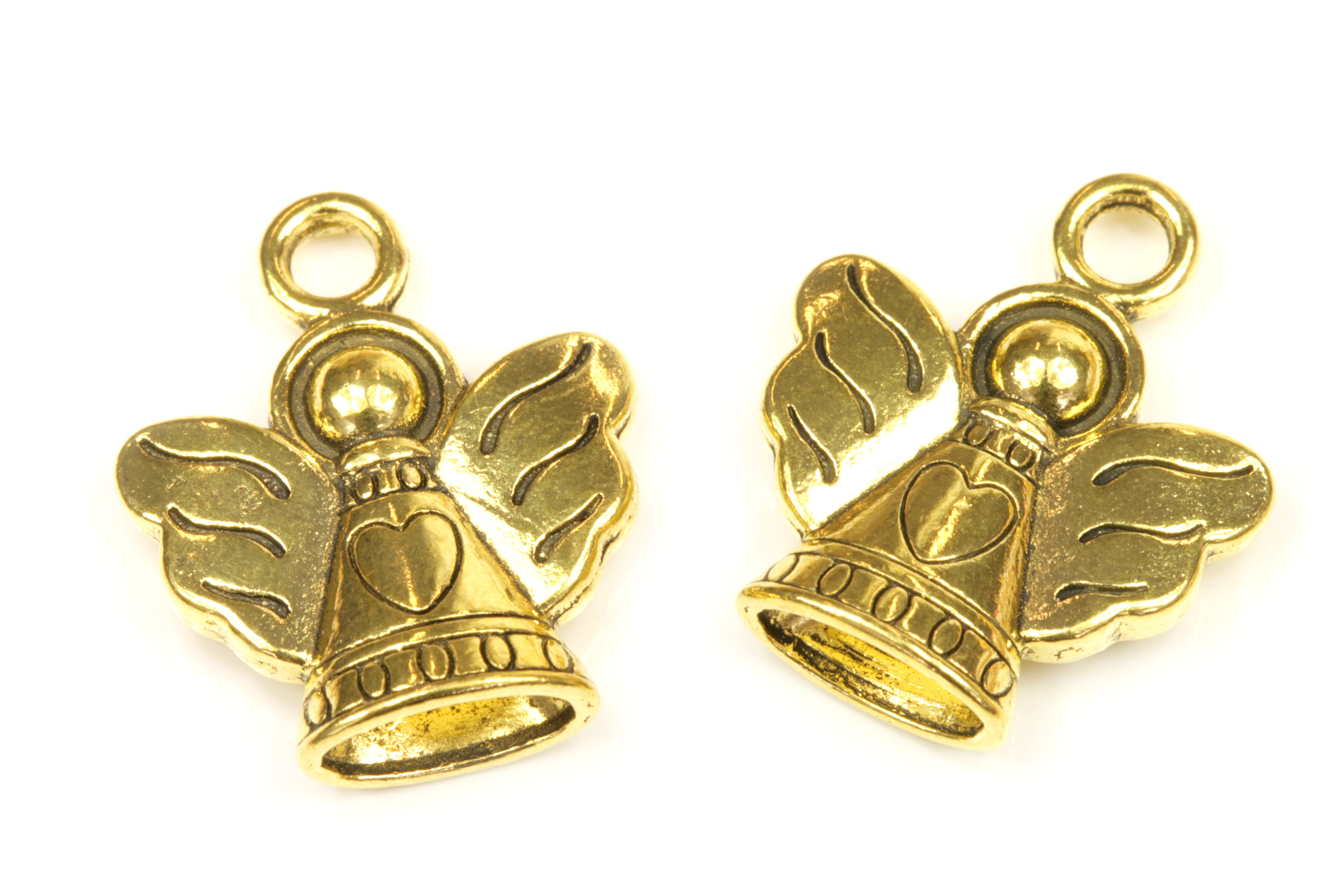 Kovový přívěsek anděl se srdíčkem 23x20x7 mm, oboustranný, barva zlatá, 1 ksSkladem17 Kč/ bal.