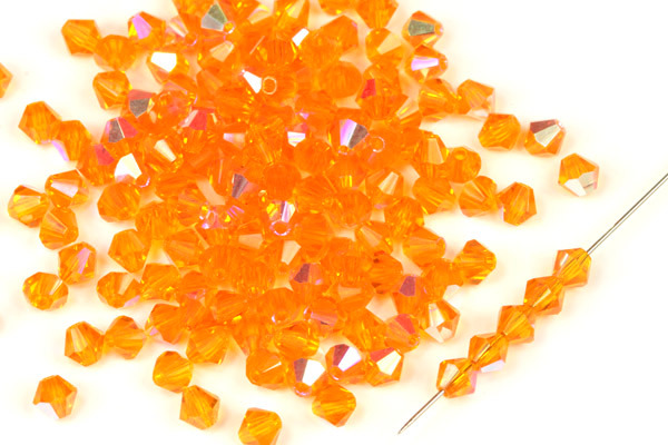 - M.C. sluníčka (bicone) 4 mm, 36 ks - transparentní oranžová, hyacint s AB pokovem