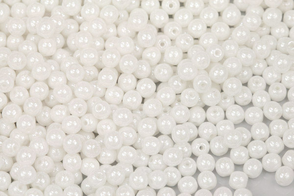 Mačkané korálky kuličky 4 mm, 40 ks/16 cm - bílý alabastr s listrem