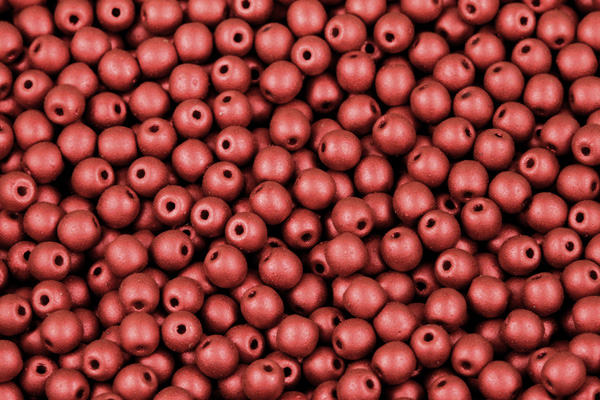 Mačkané korálky kuličky 4 mm, 40 ks/16 cm - matná červená pálená, lava red
