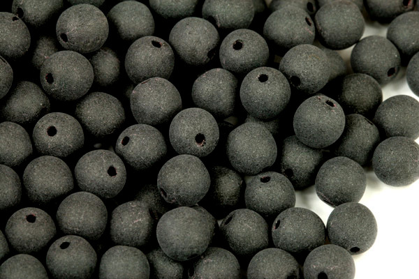 Skleněné mačkané korálky ve tvaru kuliček o průměru 6 mm jsou vyrobeny ze sytého černého skla s matnou povrchovou úpravou.