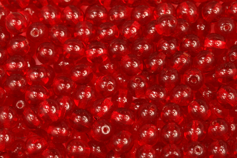 Tyto skleněné mačkané korálky ve tvaru kuliček o průměru 6 mm jsou vyrobené z transparentního červeného skla v odstínu rubín (90080).