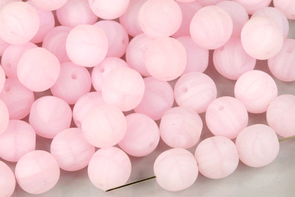- Mačkané korálky kuličky 8 mm, 20 ks/16 cm - opálová růžová matná