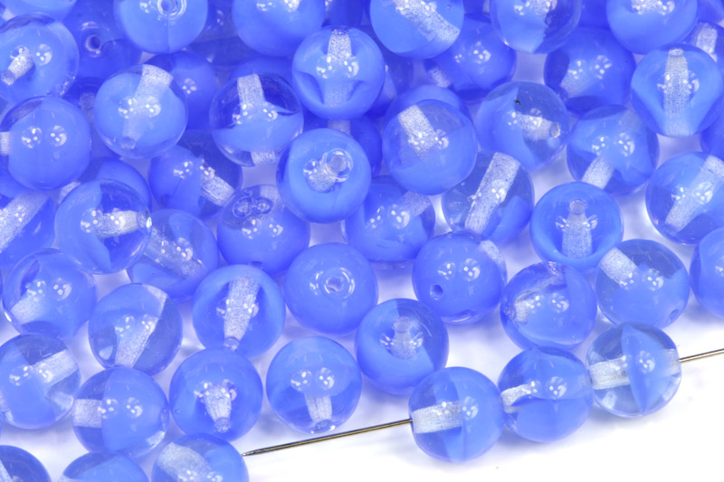 Skleněné mačkané korálky kuličky o průměru 8 mm pochází z českých skláren v oblasti Jablonecka.