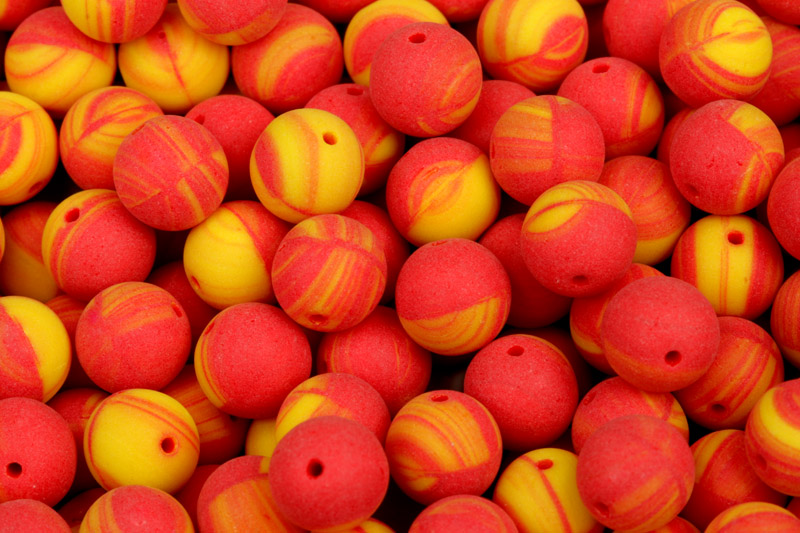 - Mačkané korálky kuličky 8 mm, 20 ks/16 cm - sytá žluto-červená, matná