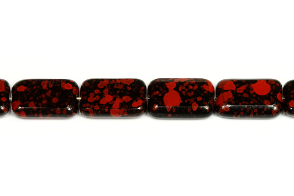 - Mačkaná perle smáčená, obdélník 12x8 mm, 14 ks/16 cm - červeno-černá žíhaná
