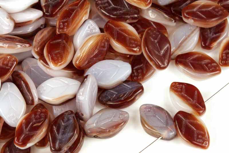 - Mačkané korálky lísteček 12x7 mm, 20 ks - žíhaná bílo-hnědá