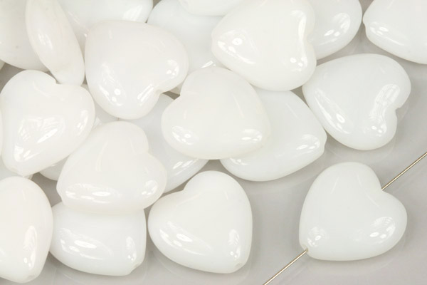 Mačkané korálky srdce 15x16 mm, 5 ks - bílý alabastrSkladem25 Kč/ bal.