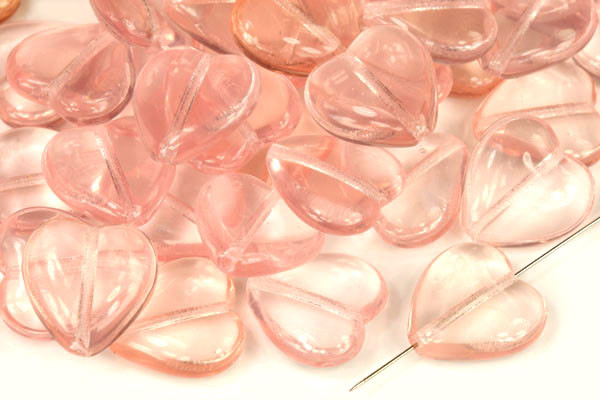 Tyto srdíčkové korálky jsou vyrobeny z transparentního růžového skla v odstínu rozalín. Skleněné korálky ve tvaru srdíček jsou vyrobeny v českých sklárnách na Jablonecku.