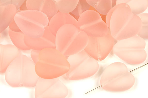 Tyto srdíčkové korálky jsou vyrobeny z transparentního růžového skla v odstínu rozalín s matným efektem. Skleněné korálky ve tvaru srdíček jsou vyrobeny v českých sklárnách na Jablonecku.