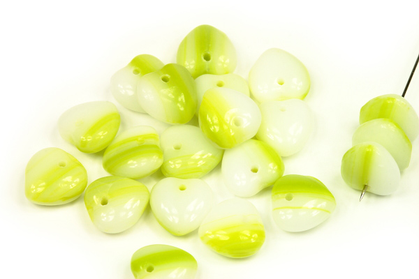 - Mačkané korálky srdce 8 mm, 20 ks - sytá zeleno-bílá žíhaná