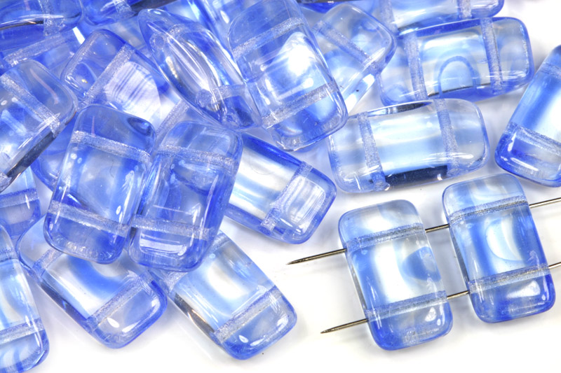 Mačkaný obdélník dvoudírkový, Carrier beads 9x17 mm, 10 ks - modré žíhání v krystalu