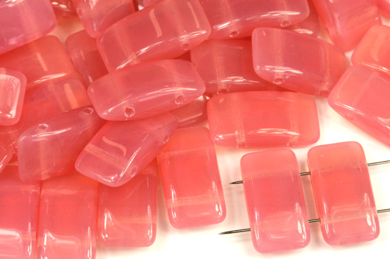 Mačkaný obdélník dvoudírkový, Carrier beads 9x17 mm, 10 ks - růžový opálSkladem65 Kč/ bal.