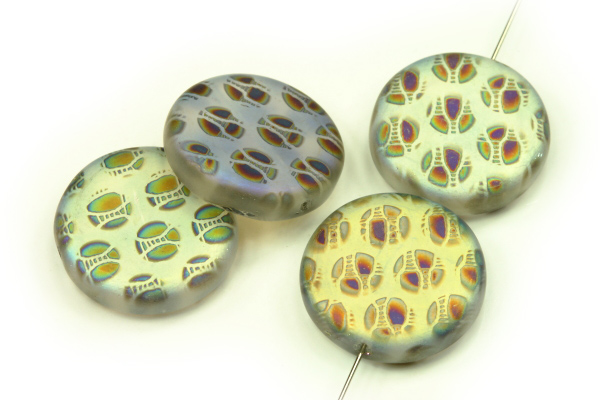 Mačkaný penízek AB design 17 mm, 5 ks - duhová žluto-modrá, matná s AB vzoremSkladem21 Kč/ bal.