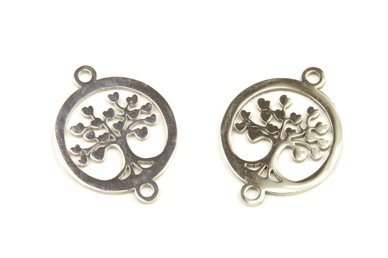 - Mezidíl z nerezové oceli AISI 201, strom života v kruhu se 2 očky 21x16x1 mm, 1 ks