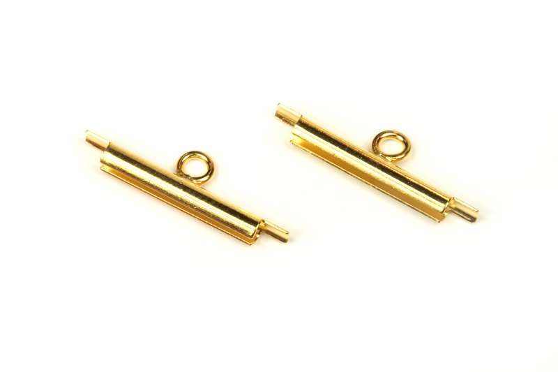 - Nasunovací koncovka Miyuki, šířka 15 mm s 1 očkem, průměr 2 mm, galva zlatá, 2 ks