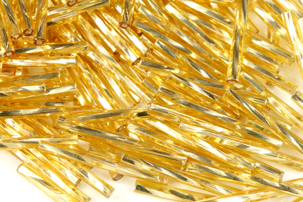 - PRECIOSA Bugles-SH, stáčené čípky 11,1" (25 mm), 50 ks - svět. topaz (zlatá), stř.průtah