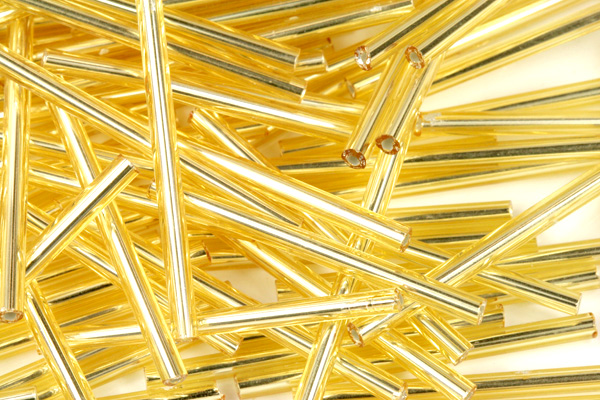 - PRECIOSA Bugles-RH, rovné čípky 15,6" (35 mm), 50 ks - svět. topaz (zlatá), stř.průtah