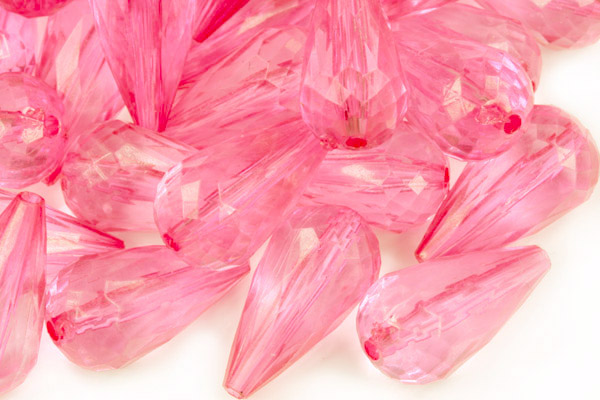 - Plastové korálky, broušené hrušky 21x11 mm, 1 ks - transparentní růžová