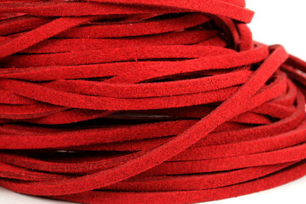 Plochý řemínek 3 mm, imitace kůže (semiše), 1 ks cca 1 m - červenáSkladem20 Kč/ ks