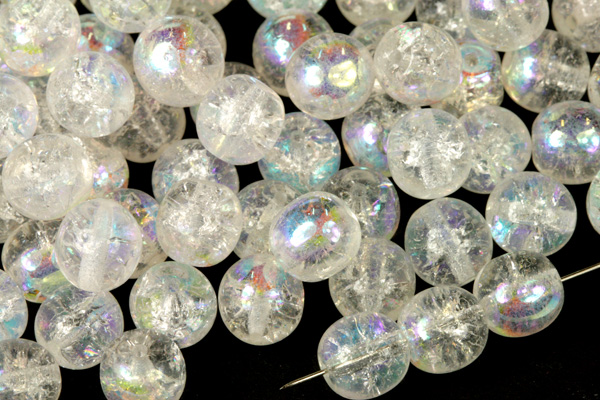 - Praskané korálky kuličky 8 mm, 20 ks/16 cm - krystal s duhovým AB pokovem