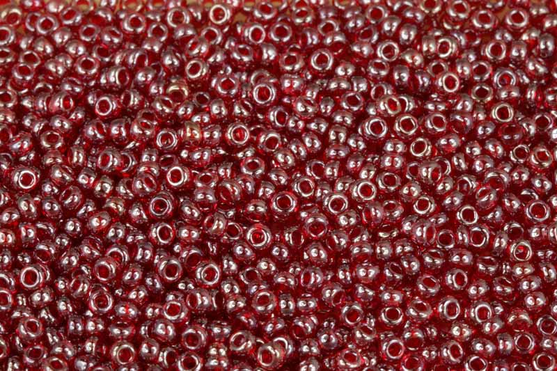 - PRECIOSA rokajl 8/0 (2,8 - 3,2 mm) RH, bal. 50 g - transp. rubínově červená s listrem