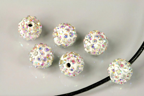 Šatonové korálky o velikosti 10 mm jsou pokryty krásně třpytivými skleněnými šatonky, které díky ploškám odrážejícím světlo vypadají luxusně a zářivě.